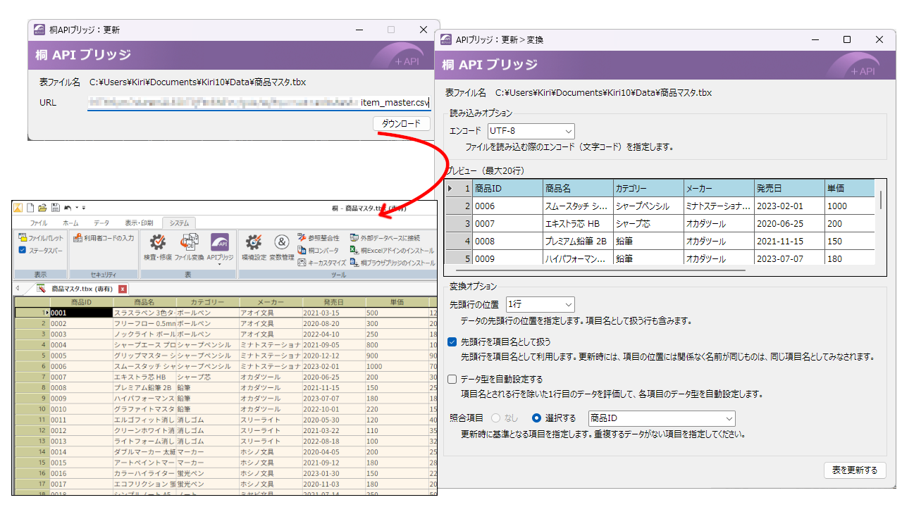 桐APIブリッジを利用すると、外部にあるデータを簡単に桐の表に取り込むことができます。