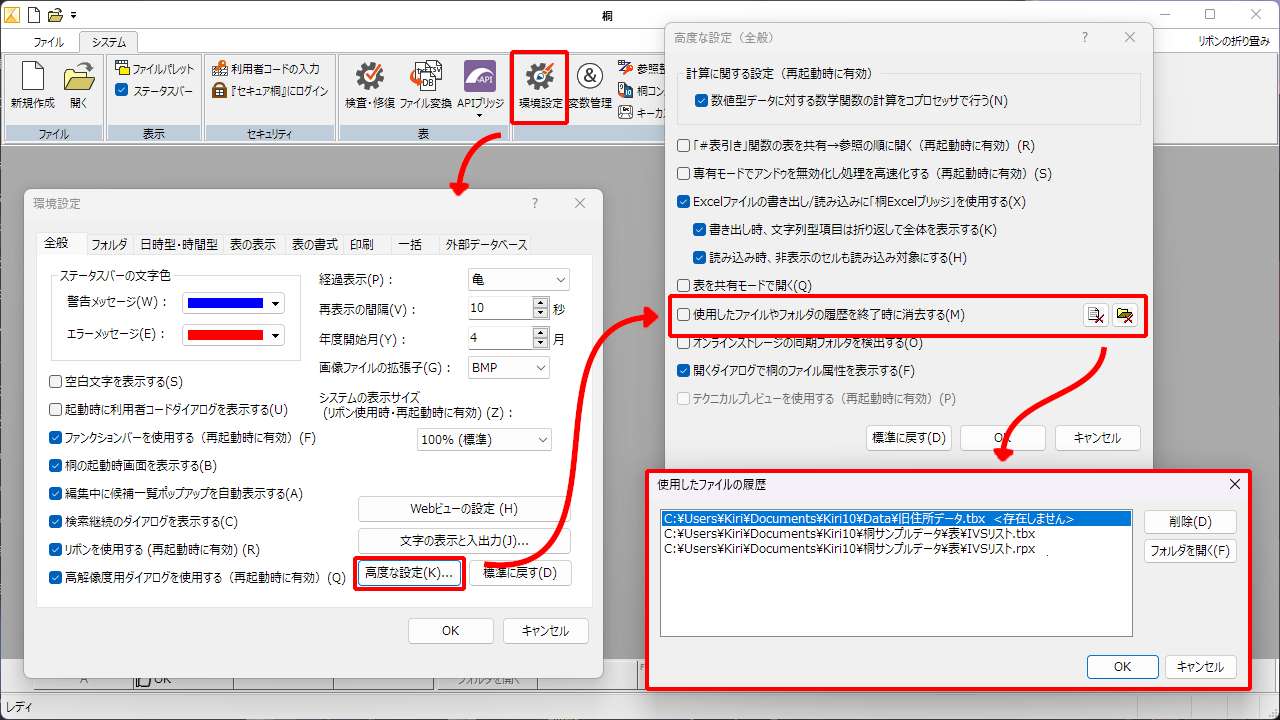 環境設定で初期値を登録できるため、レポート印刷や一括処理など桐の各機能からいつでも参照できます。