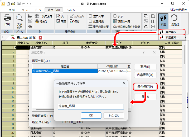一括処理・履歴を表に処理条件として登録して、表単体で処理の自動化ができるようにしました。