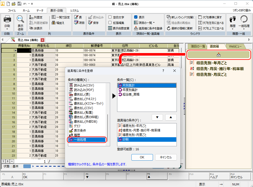 処理条件になっているので、道具箱に追加してさらに簡単に実行することができます。