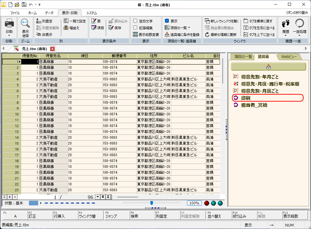 テーブルを対象とするので、より簡単・安全・確実に桐とExcelの間でデータの交換ができます。